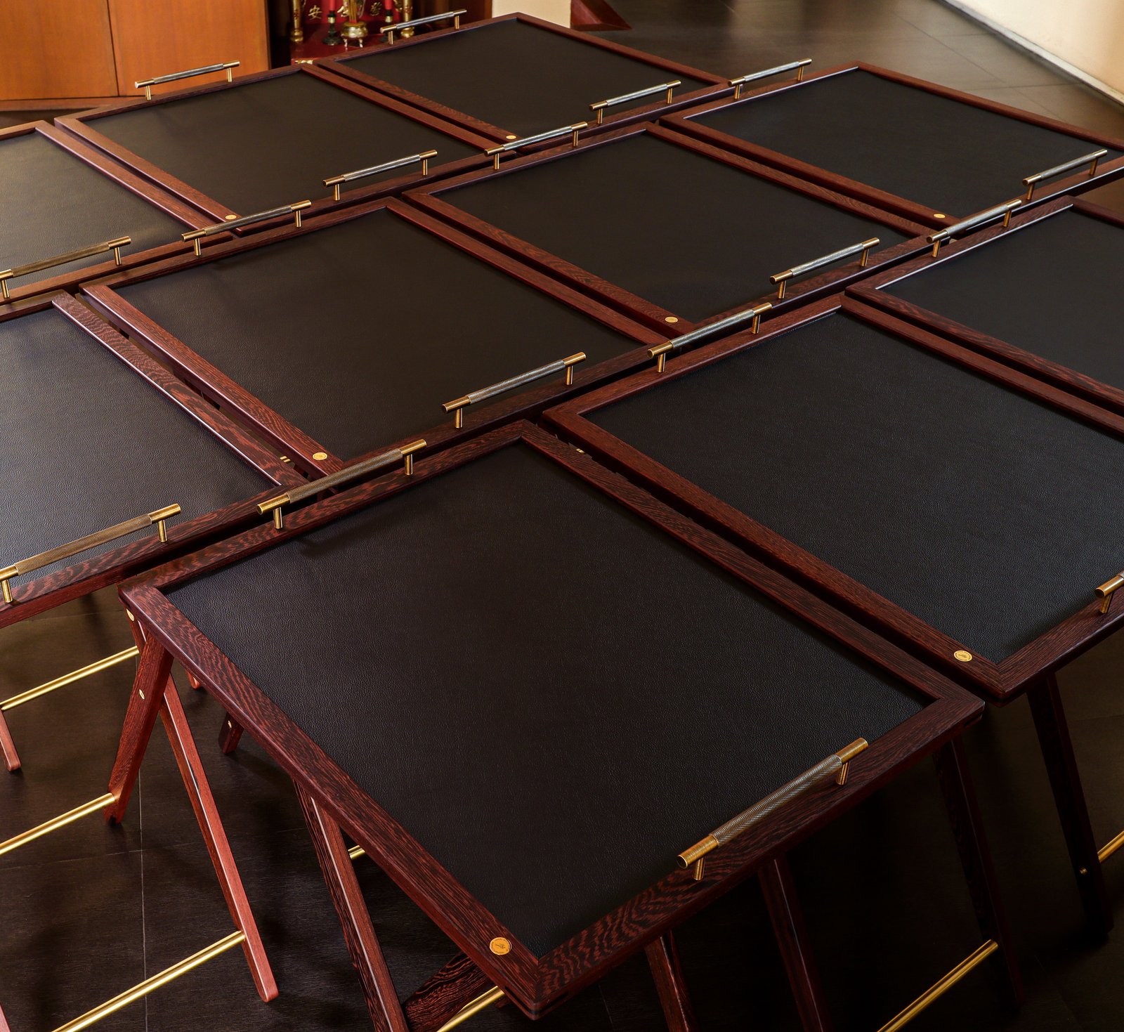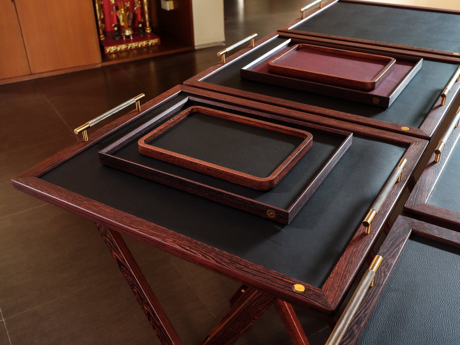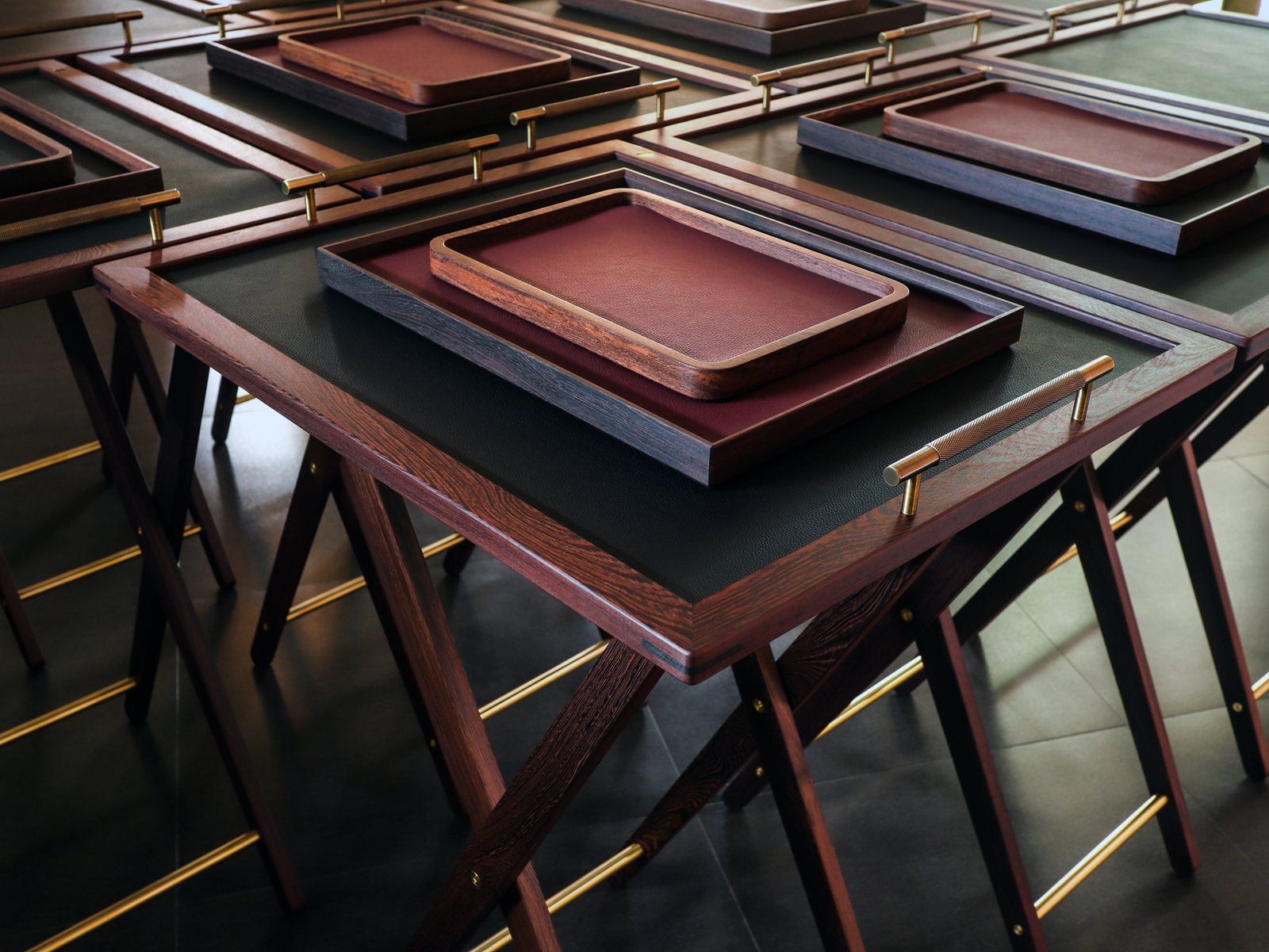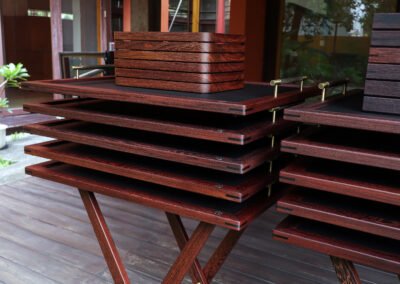 Set of butler stands and service trays for Anne-Sophie PIC at Le Normandie (Bangkok)