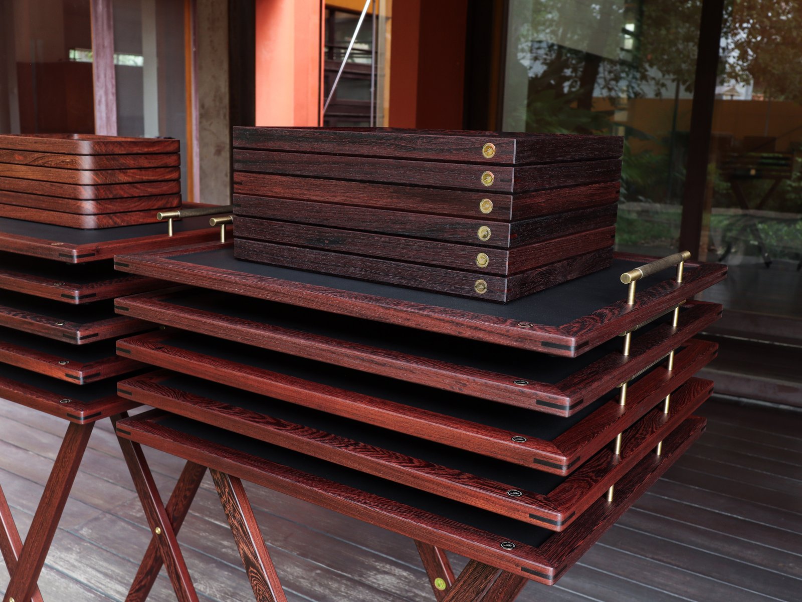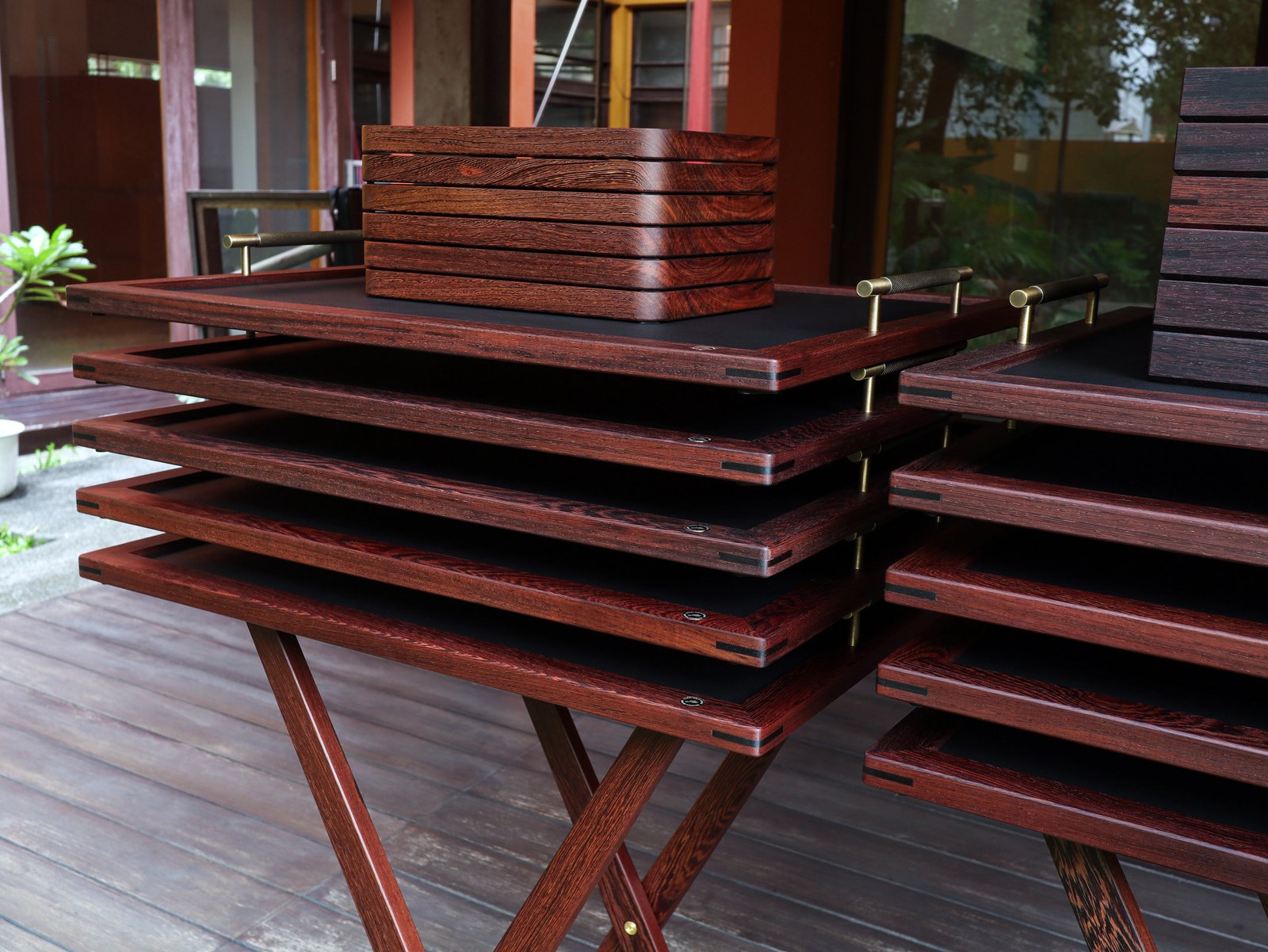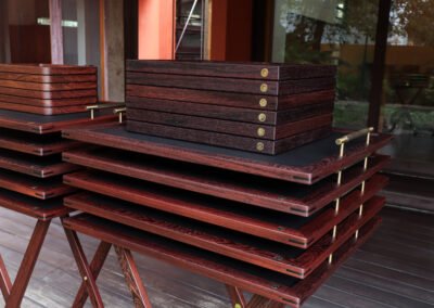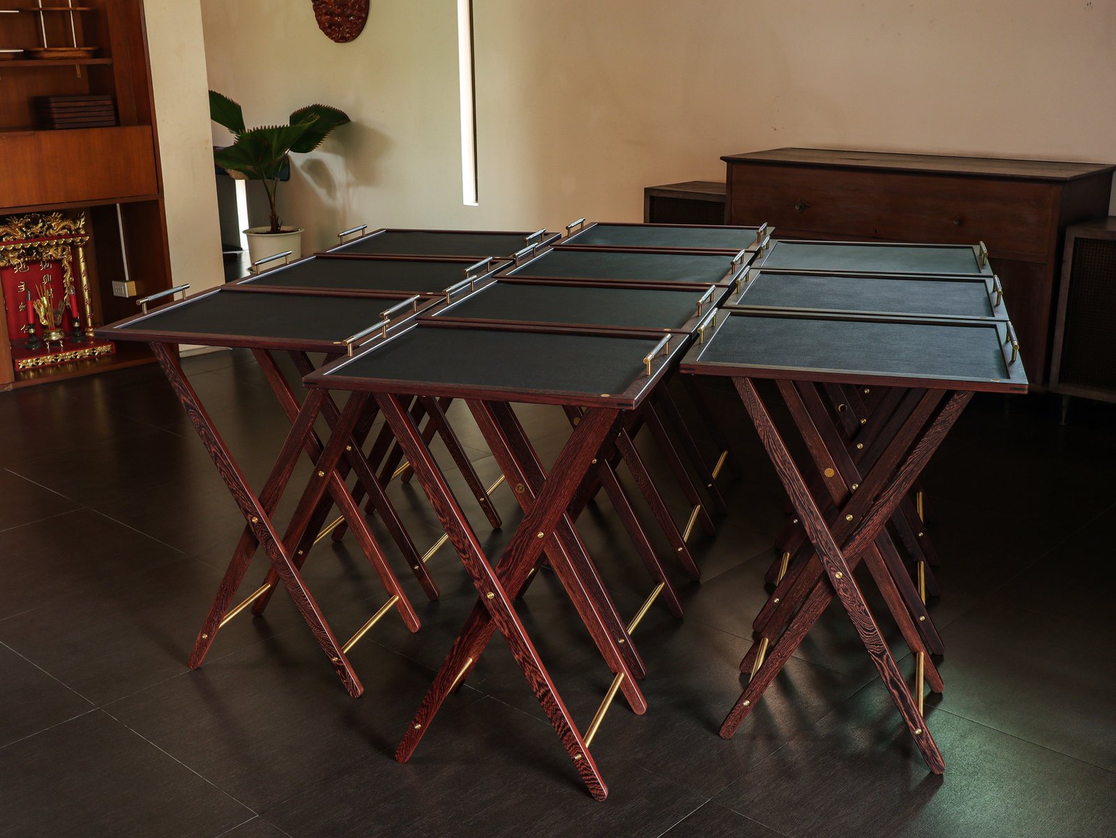 Set of butler stands and service trays for Anne-Sophie PIC at Le Normandie (Bangkok)