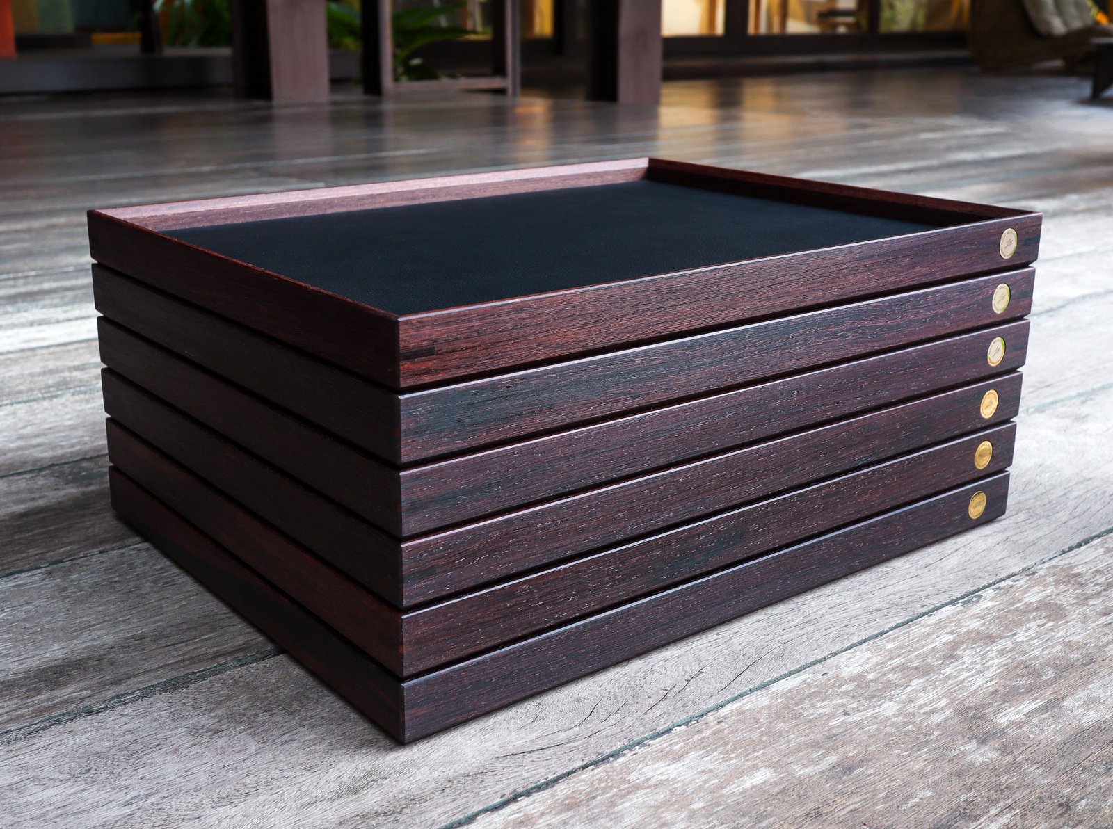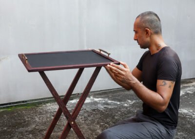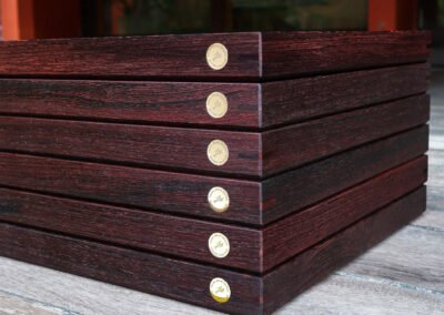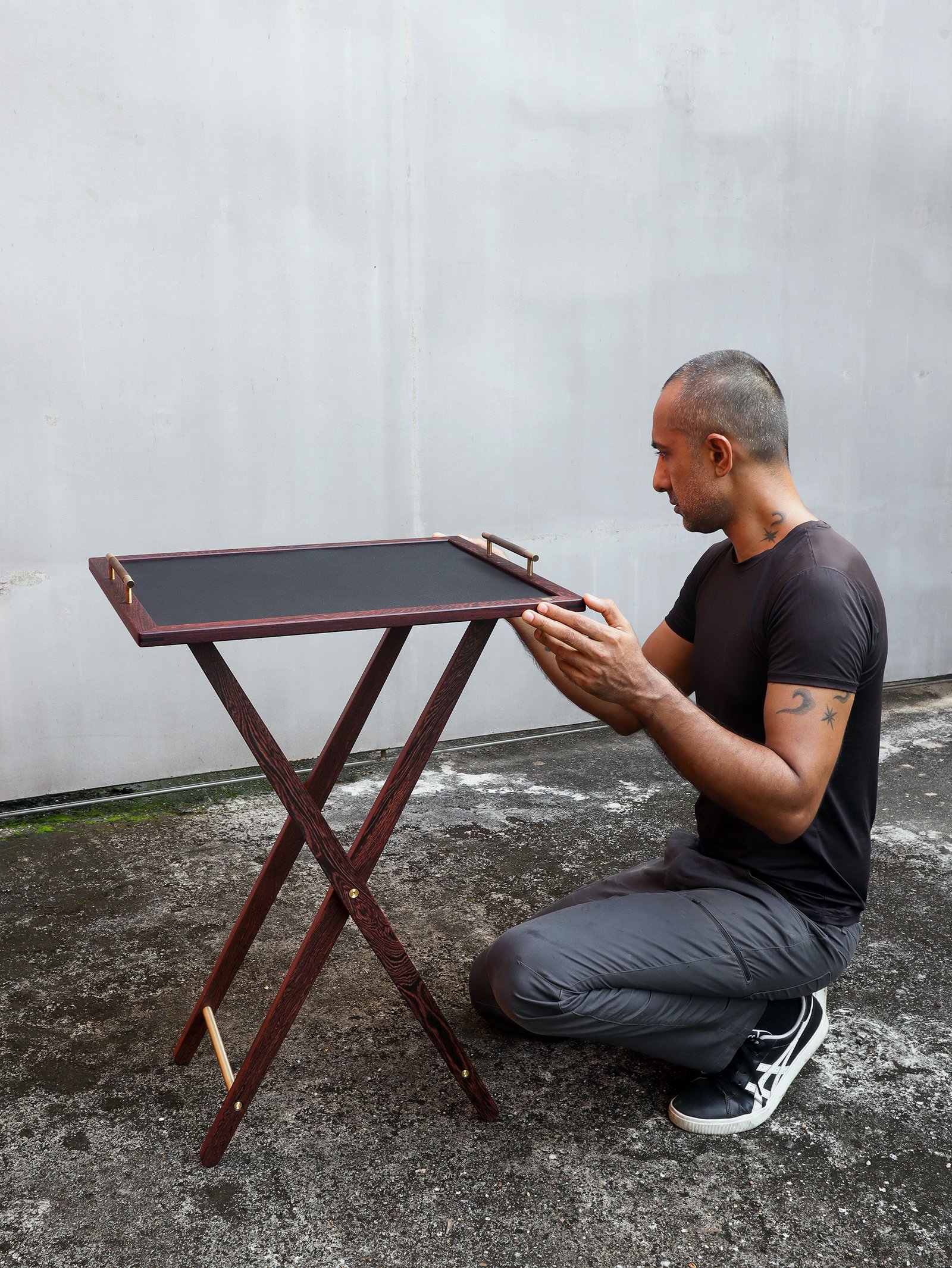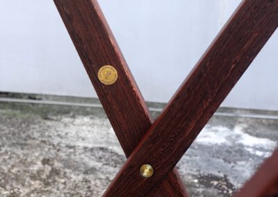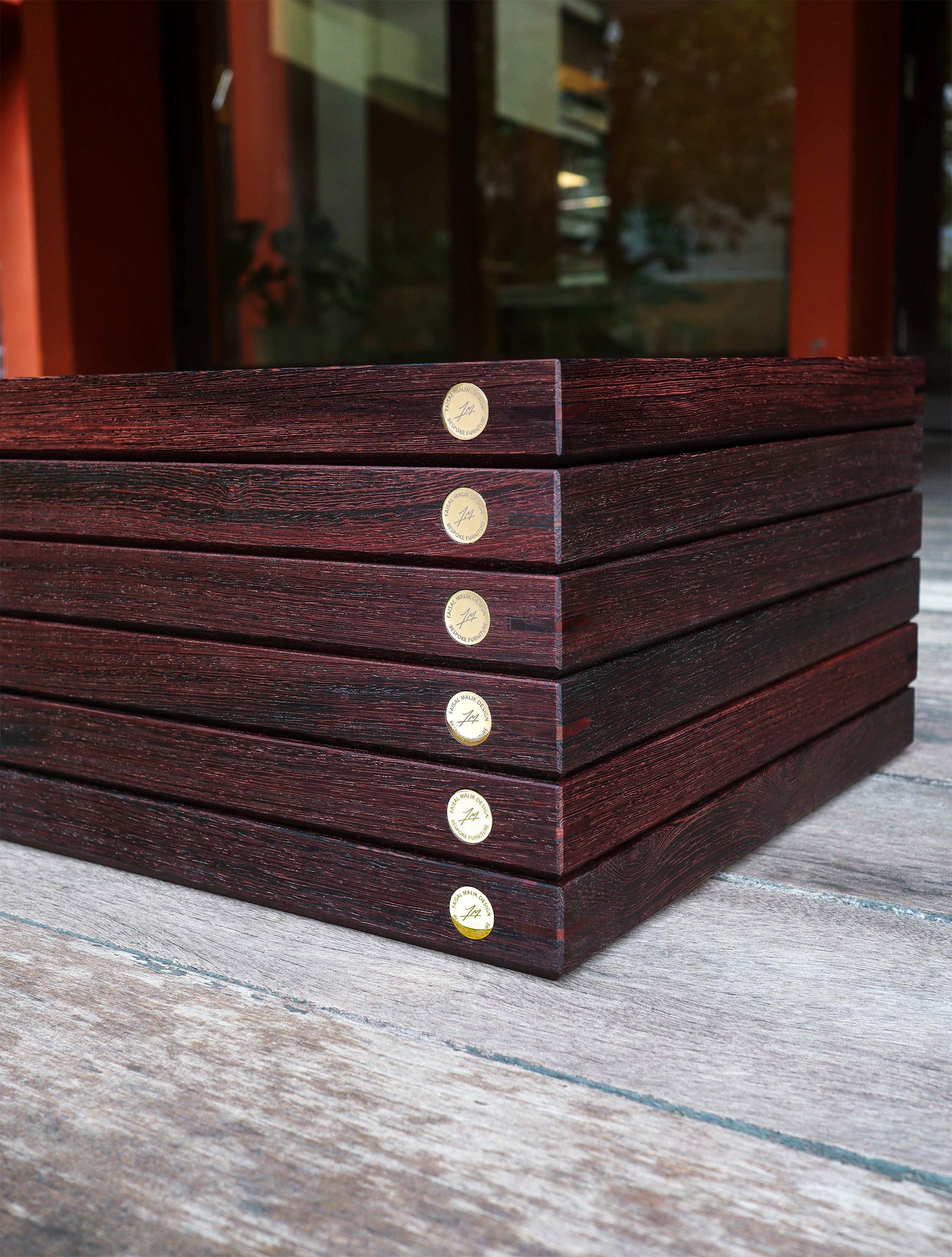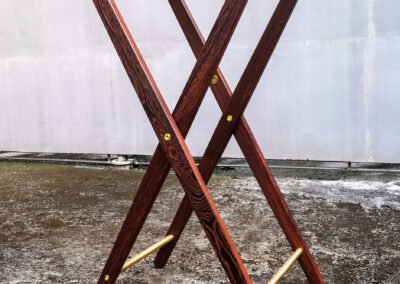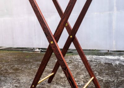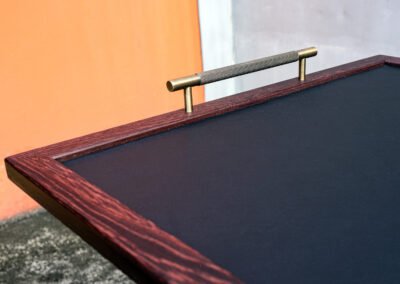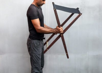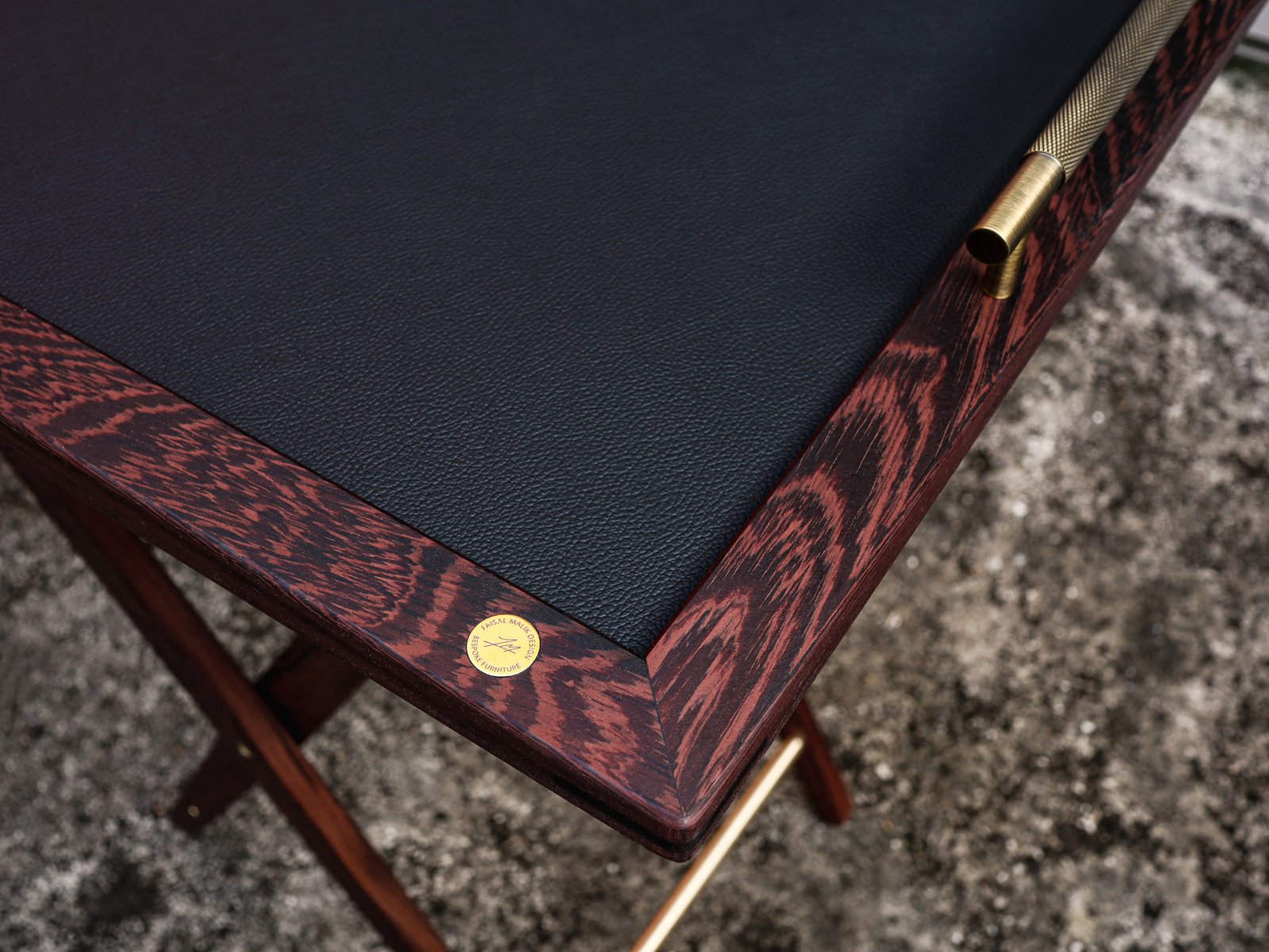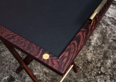 Every element—conceived and crafted by Élodie and myself with meticulous care—emerged from a dialogue between material and intention. Pheasant wood with its rare tonalities, solid brass, and genuine leather were selected for their inherent nobility and quiet strength, offering a presence that is both refined and enduring.