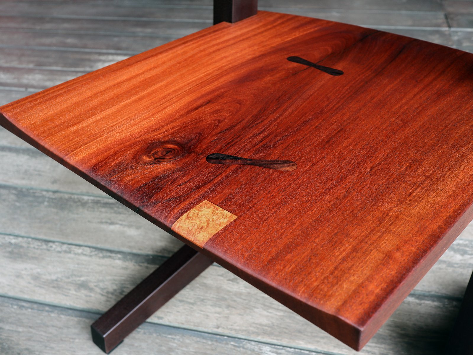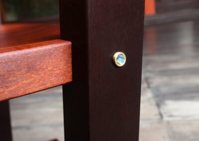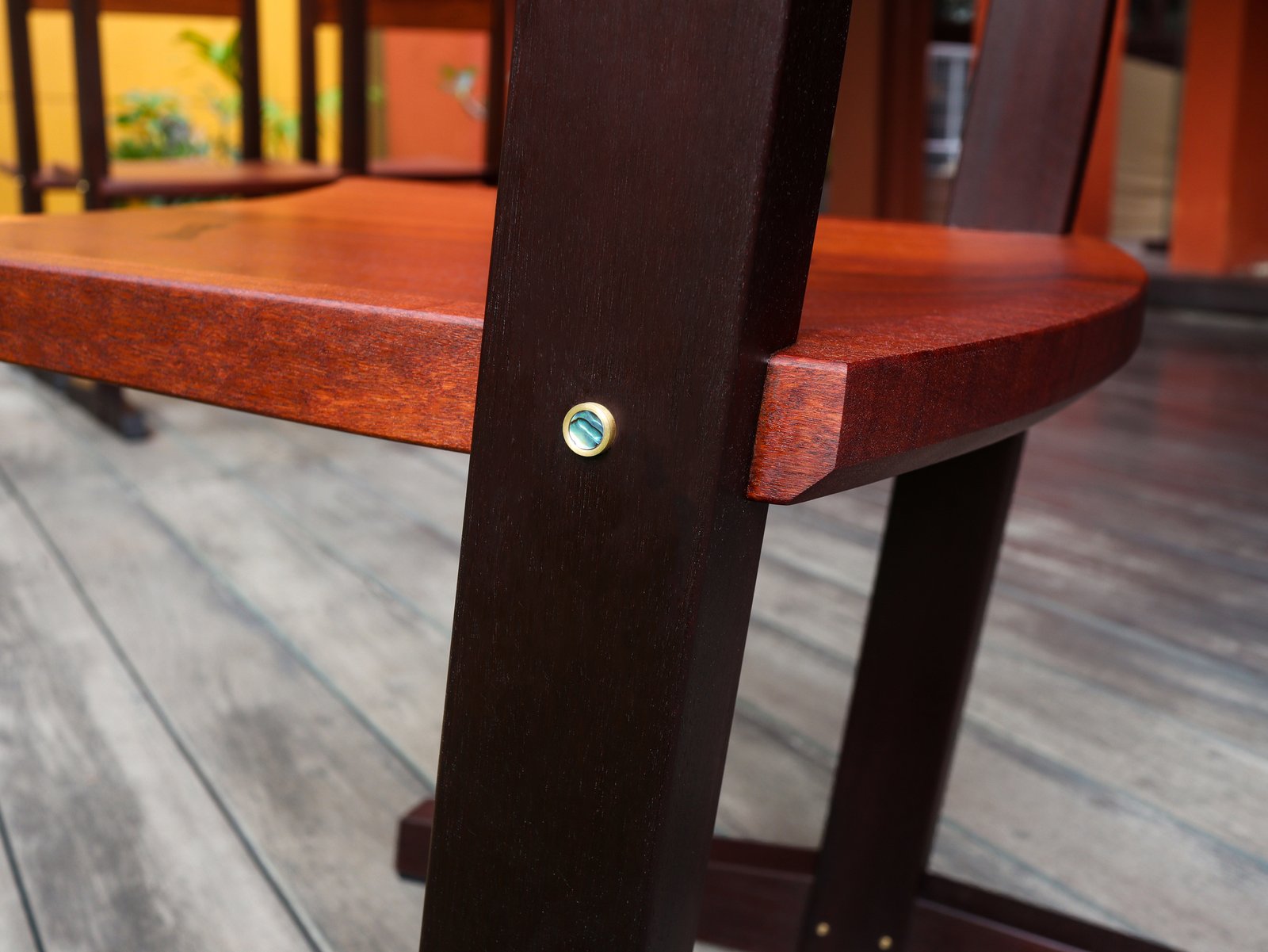 Vintage Hardwood, brass, abalone shell.