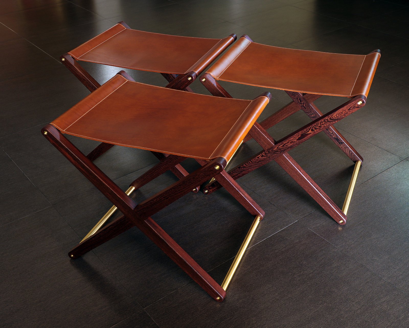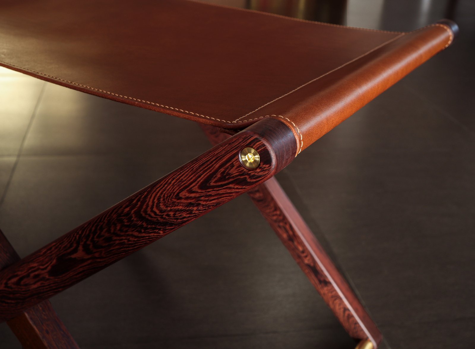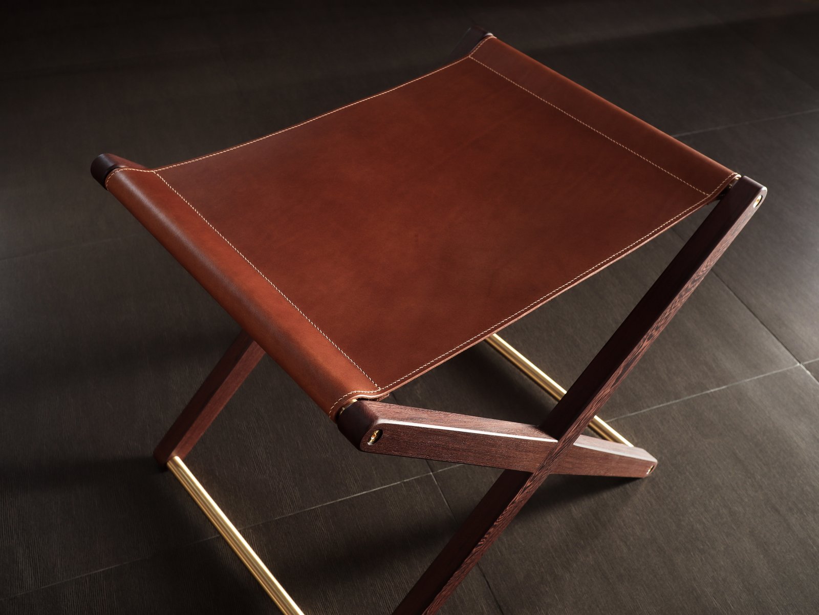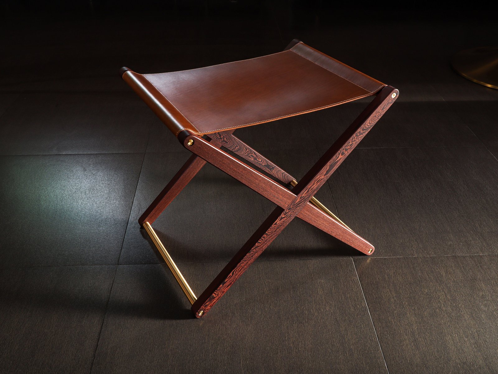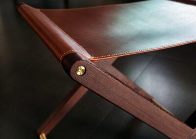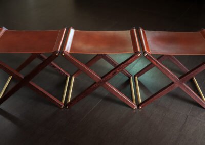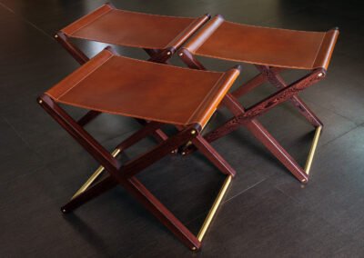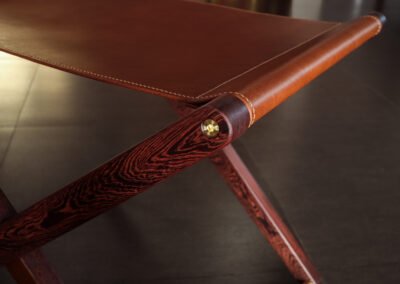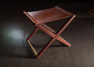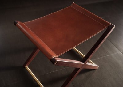 Buttero leather stool in Pheasant wood and solid brass