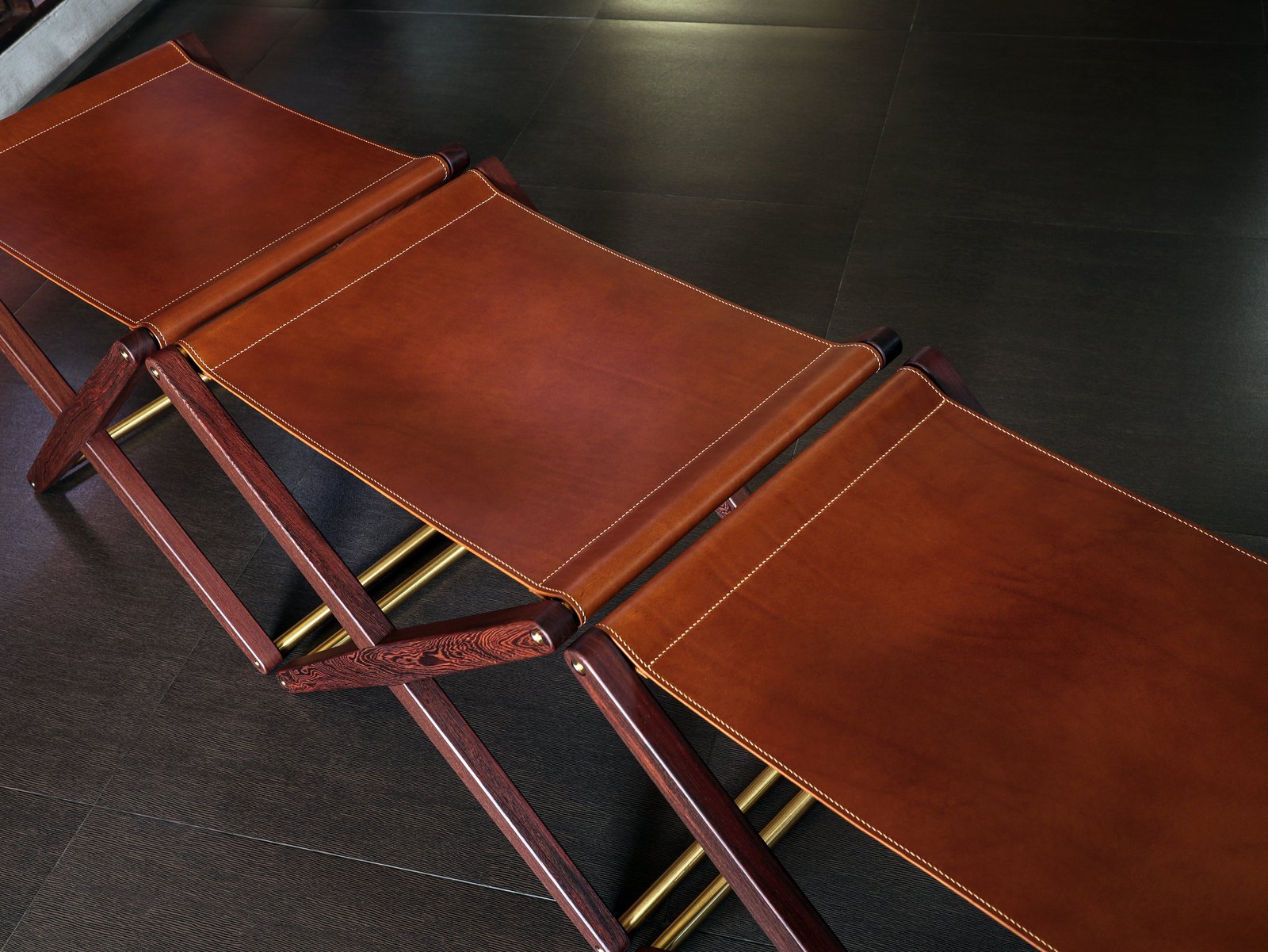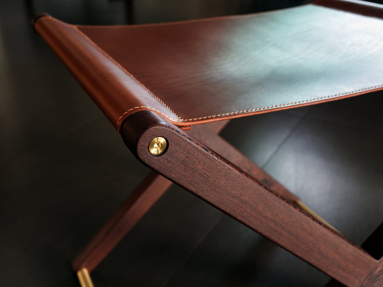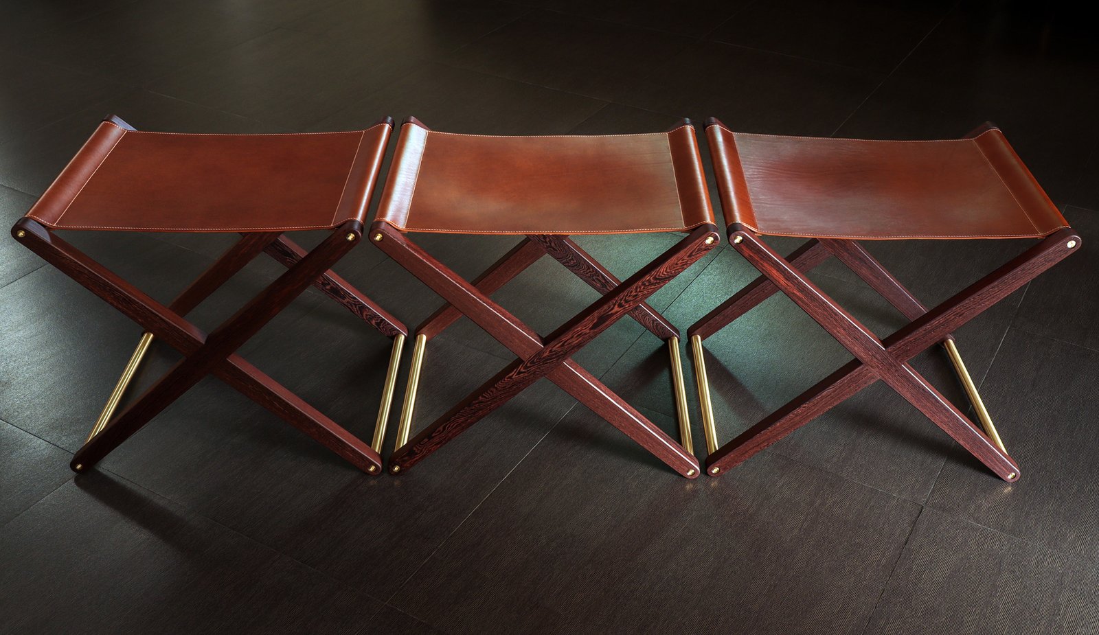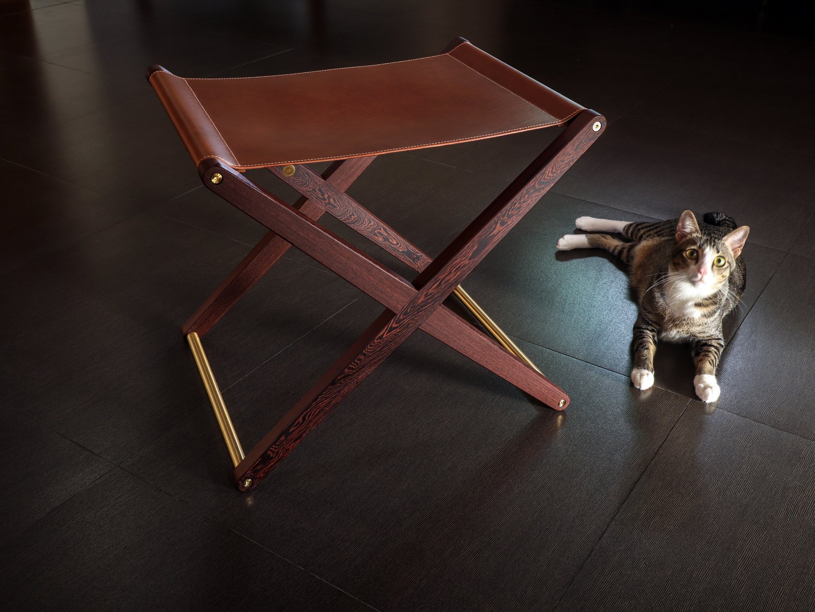 Buttero leather stool in Pheasant wood and solid brass